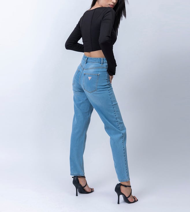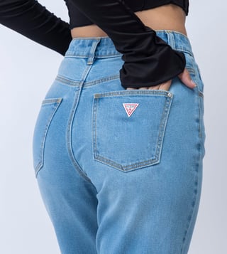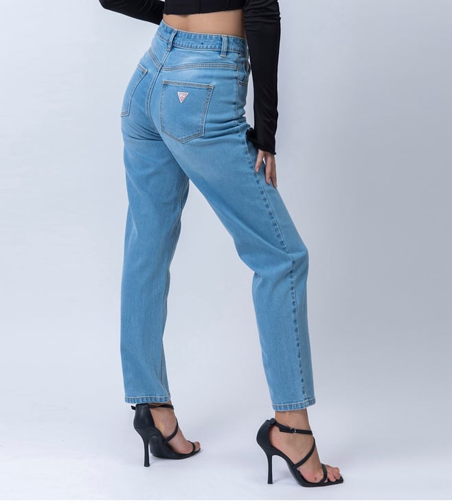 Guess Mom Relaxed Fit Loto Light Lightly Washed High Rise Jeans