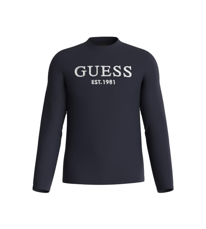 Guess Navy Blue Graphic Regular Fit Loungewear T-Shirt
