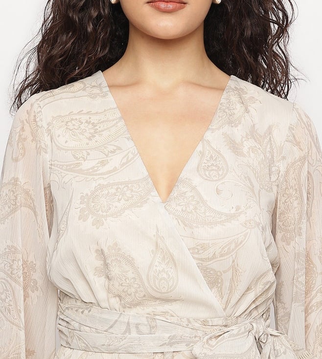 Embrace timeless elegance with our natural paisley print dresses, where intricate floral patterns dance across a canvas of rich hues. Designed for the modern woman, these dresses feature a flattering regular fit that gracefully complements every silhouette. The long sleeves and v-neckline add a touch of sophistication, while the 100% polyester fabric ensures comfort and durability. A chic tie-up closure completes the look, offering a customizable fit that exudes effortless charm and style.