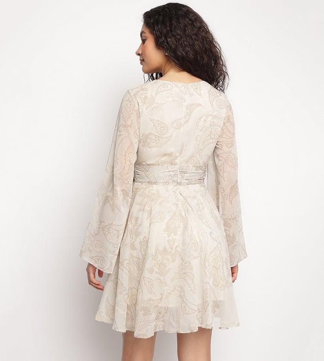 Guess Off White Floral Laila Mini Flare Dress