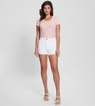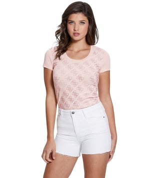 Guess Pink Cotton Printed T-Shirt