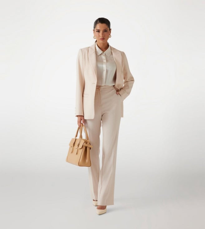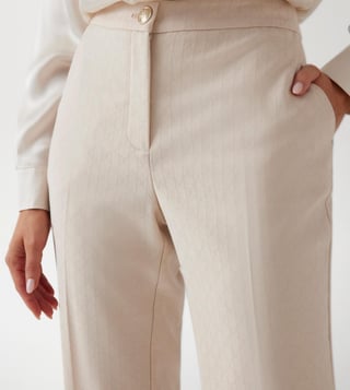 Elevate your formal wardrobe with these chic flat front trousers in a vibrant pink hue. Designed for the modern woman, these trousers feature a regular fit that offers comfort and style. The high-rise waist provides a flattering silhouette, while the button and zip closure ensures a secure fit. Crafted from a durable polyester blend, these trousers are perfect for all-day wear. The unique typographic pattern adds a touch of sophistication, making them ideal for both office settings and special occasions.