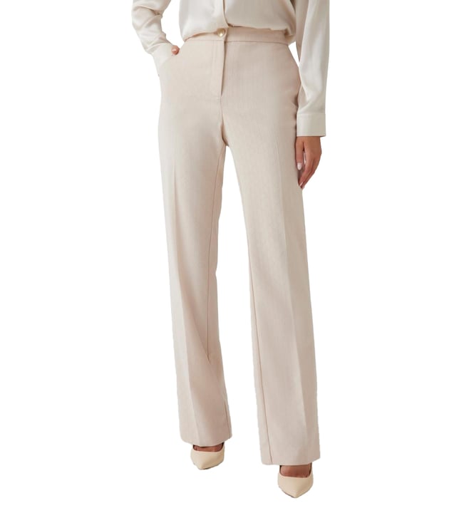 Guess Pink Polyester Blend Textured Trousers