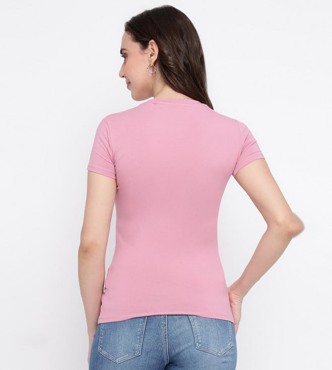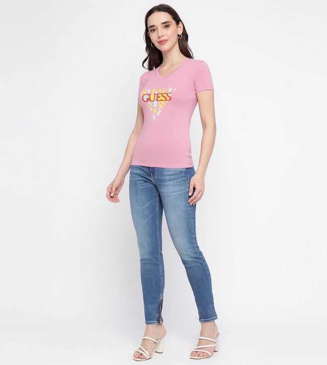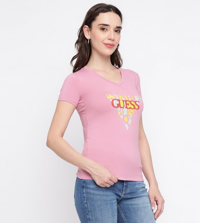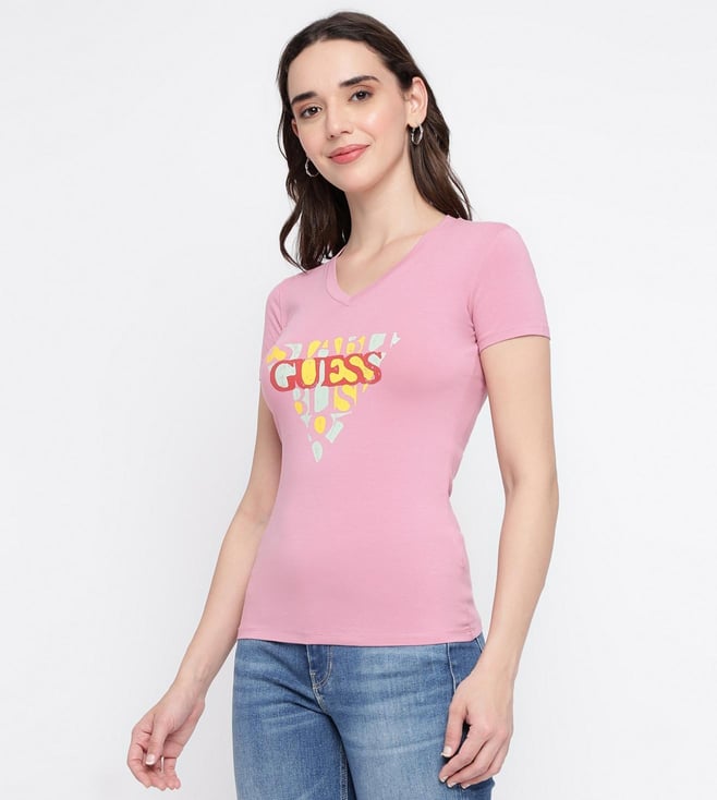 Guess Pink Printed V-Neck Short Sleeve T-shirt