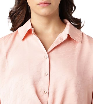 Powder Rose Printed LS New Bowed June Regular Fit Shirt