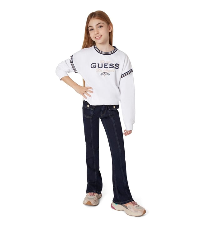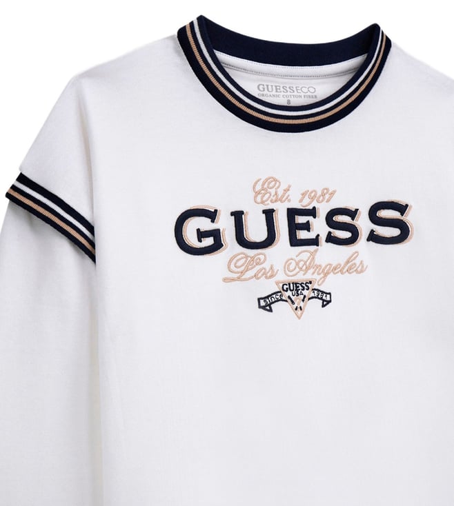 Introducing the Guess kids pure white ls jersey printed regular fit t-shirt, the perfect blend of style and comfort for your little ones. Made from soft cotton, this casual t-shirt features a round neck and long sleeves for a versatile and trendy look. Whether for playtime or a casual outing, this t-shirt is sure to keep your child looking effortlessly cool. Upgrade their wardrobe with this must-have piece that combines quality, comfort, and style in one.