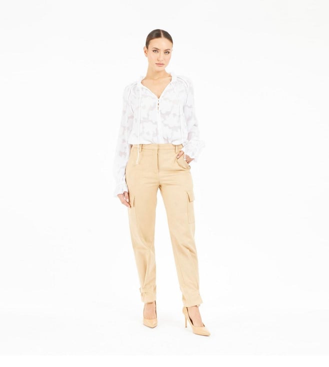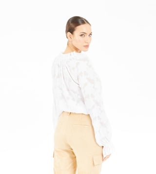 Elevate your wardrobe with the denise frill clipped flower woven top in classic white. Designed for the modern woman, this top combines comfort and style with its relaxed fit and self-design pattern. The full sleeves and elegant v-neckline add a touch of sophistication, while the delicate frill detailing enhances its feminine charm. Crafted from high-quality polyester fabric, it ensures a soft, breathable feel. The button closure offers ease of wear, making it a versatile addition to any outfit. Perfect for any occasion, this top is a must-have for effortless elegance.