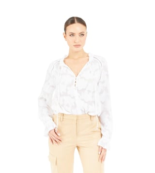 Guess Pure White Woven Design Relaxed Fit Top