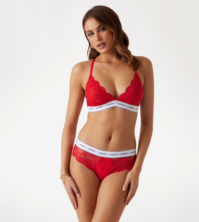 Elevate your lingerie collection with our Guess Polymide Half Coverage Self Design Red Triangle Bra. This sleek and stylish bra features a wired regular strap for added support and a flattering fit. The bold red color and chic self design will make you feel confident and empowered, while the half coverage offers the perfect balance of comfort and allure. Whether you're looking for everyday wear or a special occasion piece, this bra is a must-have addition to your wardrobe. Treat yourself to luxury and sophistication with this stunning Guess Triangle Bra.