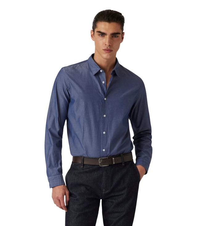Smart Blue Pure Cotton Solid Spread Collar Shirt