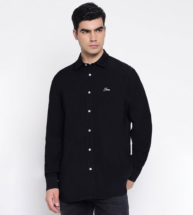 Collins Jet Black Solid Spread Collar Regular Fit Basic Shirt