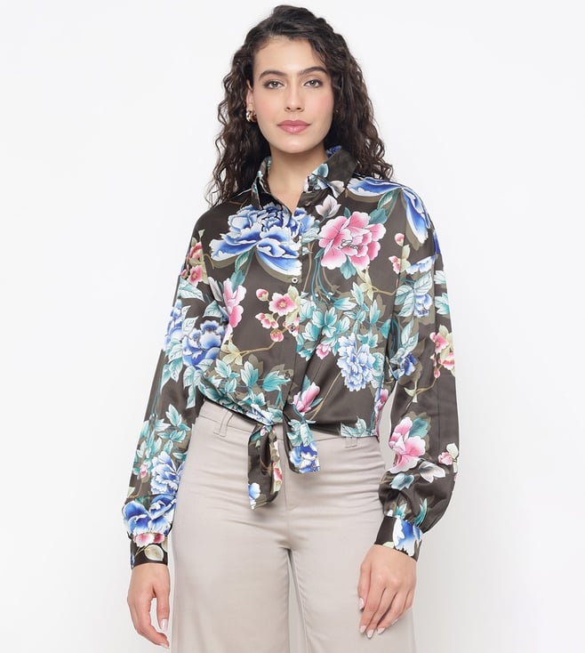 Bowed Breezy Charm Hanoi Green Floral Spread Collar Regular Fit Shirt