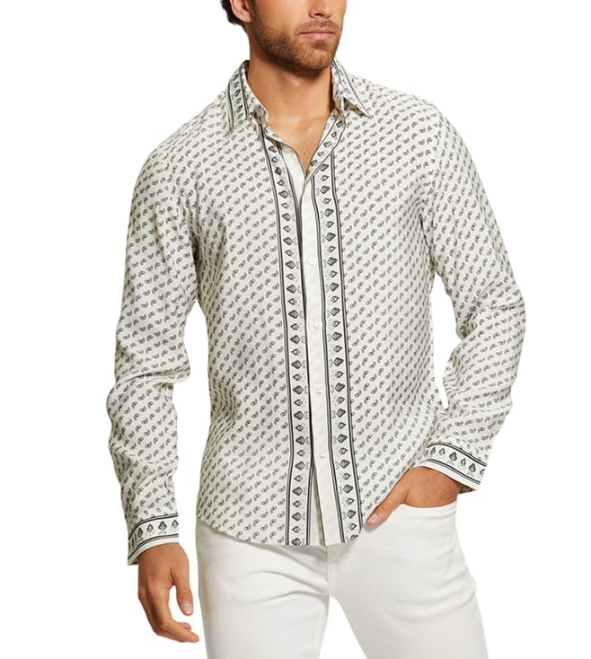 Men's White Cotton Blend Solid Slim Fit Spread Collar Full Sleeve Shirt