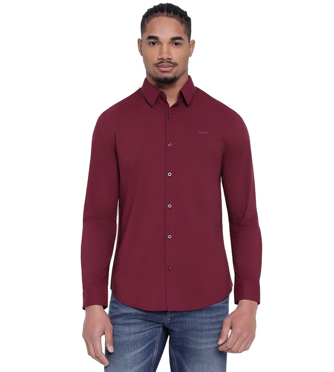 English Brown Heathe Solid Spread Collar Long Sleeves Shirt
