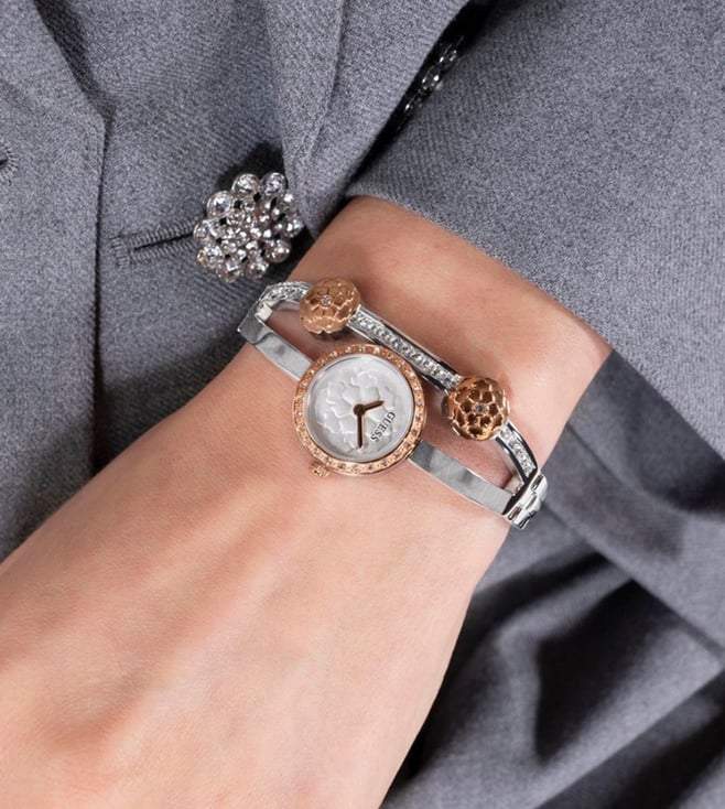 Elevate your style with the Guess GW0756L3 Gb Chloe Analog watch for women. This sleek and sophisticated timepiece boasts a beautiful rose gold-tone case and bracelet, complemented by a stunning mother-of-pearl dial with crystal accents. Perfect for any occasion, this watch not only keeps you on time but also adds a touch of elegance to your look. With its reliable quartz movement and water resistance up to 30 meters, the Guess Chloe watch is both fashionable and functional. Stay on-trend and make a statement with this must-have accessory.