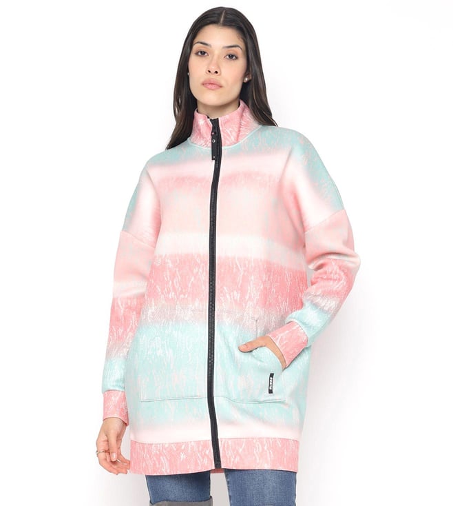 Peach Ombre Mock Neck Full Sleeve Front Open Sweatshirt