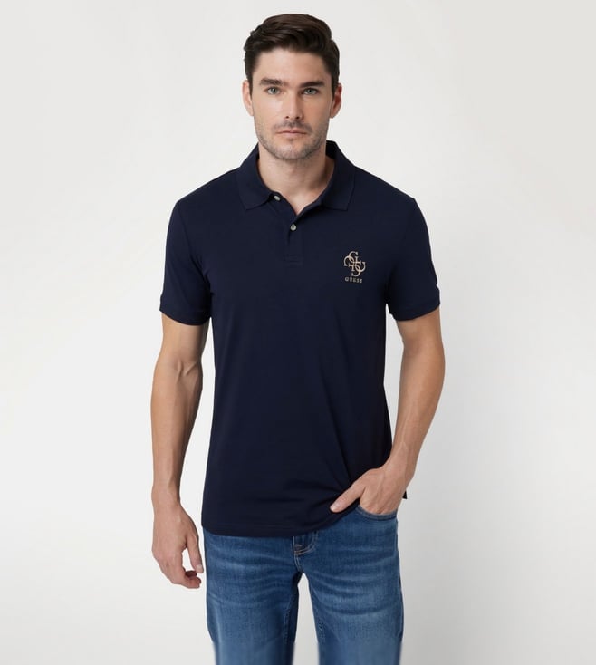 Navy Blue Solid Polo Collar Short Sleeves Polo T-Shirt