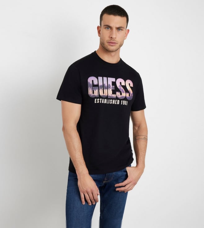 Black Graphic Print Round Neck Short Sleeves T-Shirt