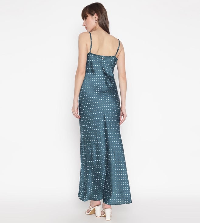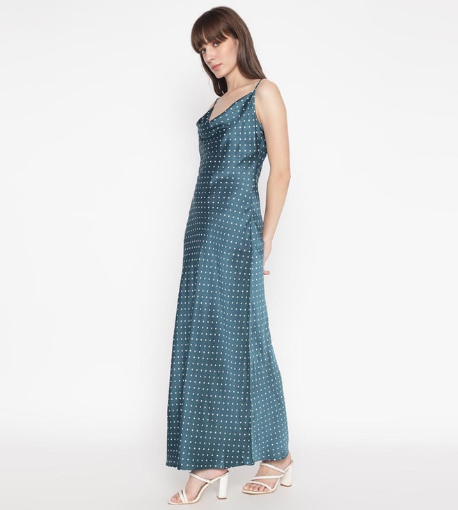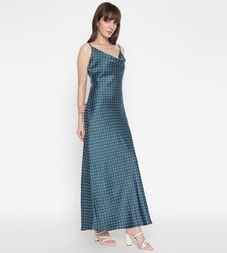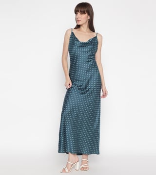 Teal Printed Shoulder Strap Sleeveless A-line Dress