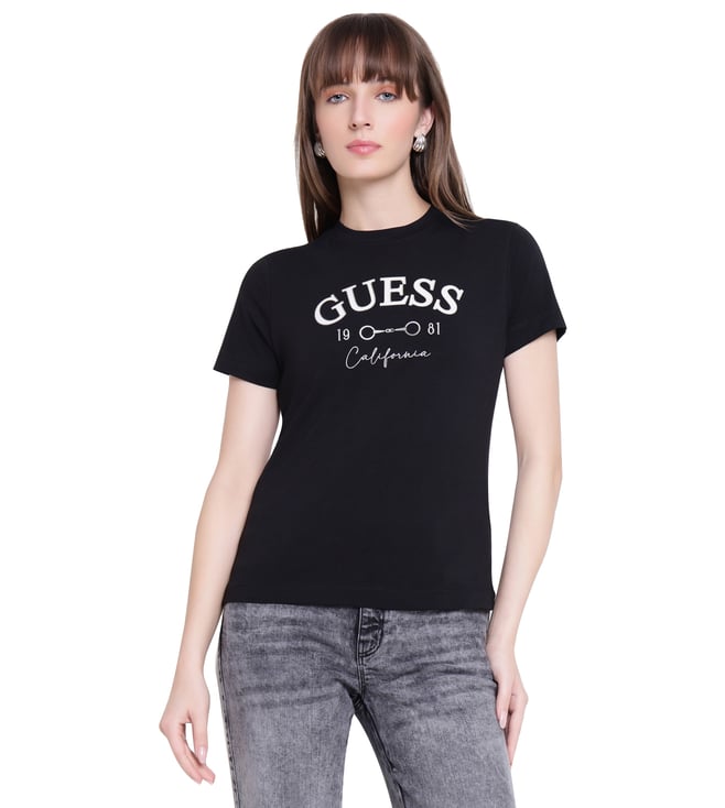 Black Pure Cotton Embellished Round Neck T-Shirt