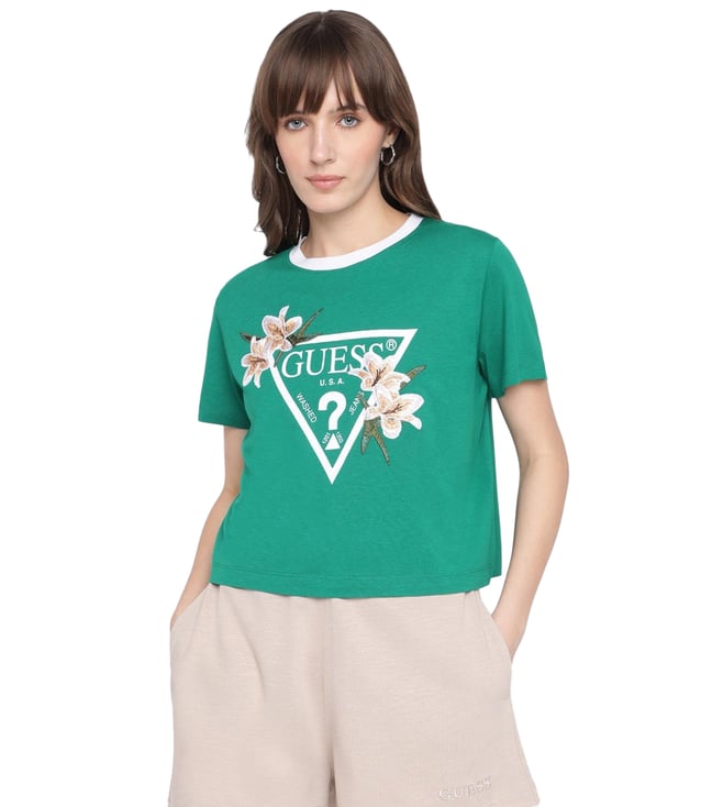 Iconic Hope Green Cotton Slim Fit Logo Printed T-Shirt