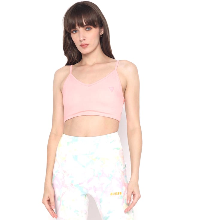 Pink Solid Shoulder Strap Sleeveless Crop Top