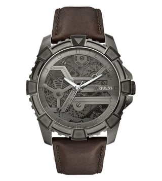 Accessorize your wrist with this men's analog watch from GUESS and make a style statement. The black round dial is protected by a mineral glass. The brass strap comes in a brown hue that further elevates the look of the timekeeper. Besides, it is completed with a pin buckle clasp to ensure a secure fit on the wrist.