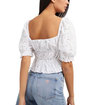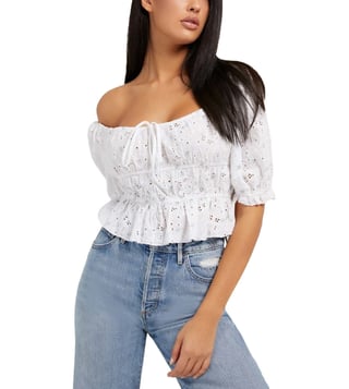 Discover a blend of style and comfort with this Guess Bardot top, featuring a contemporary design that flatters your shape. The sleek lines and unique accents provide a modern twist that sets it apart. Made with quality fabric, it promises both durability and ease of wear.