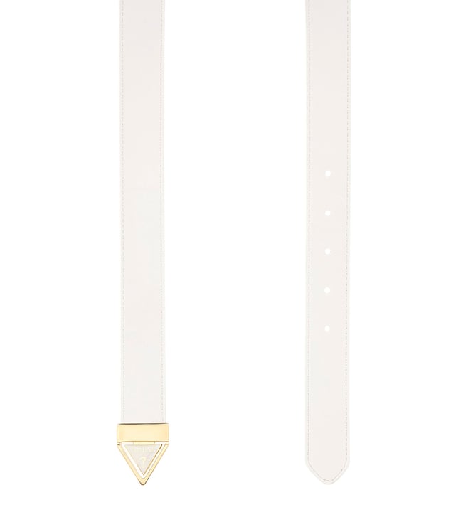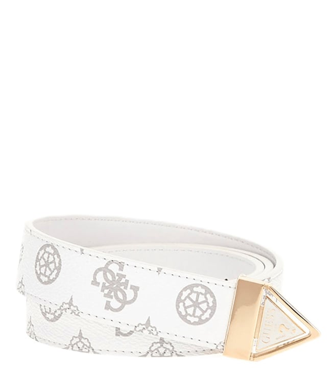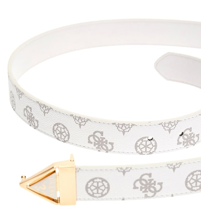 The Guess white logo belt for women is a sleek and trendy accessory that adds a fresh touch to any look. Featuring a bold Guess logo on a crisp white background, it¿s perfect for elevating casual or more polished outfits. Crafted for durability and comfort, this belt pairs effortlessly with jeans, skirts, or dresses, making it a versatile and stylish addition to your wardrobe.