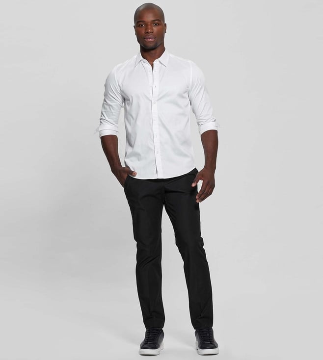 Elevate your wardrobe with this timeless white shirt, crafted for the modern man who values both style and comfort. Featuring a regular fit, it offers a flattering silhouette that complements any physique. The solid pattern exudes sophistication, while the long sleeves and classic shirt collar add a touch of elegance. Made from 100% cotton, it ensures breathability and softness against the skin. The button closure provides a polished finish, making it perfect for both formal occasions and casual outings.