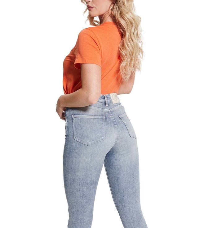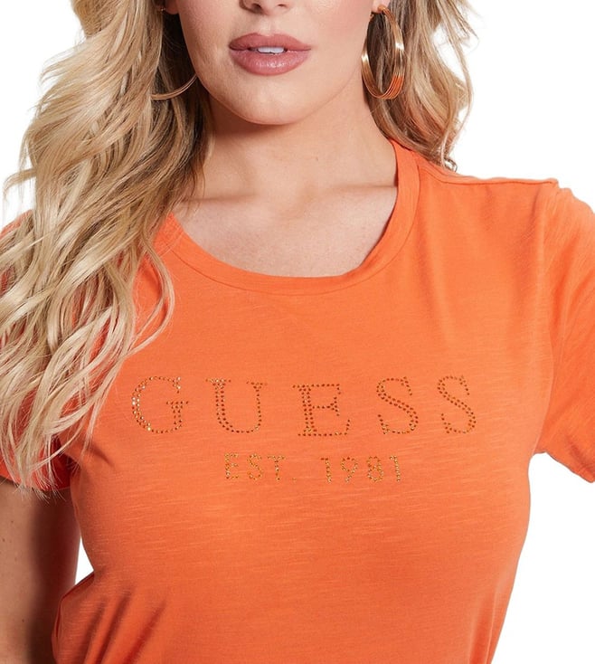 GUESS Women's Orange Cotton Printed Regular Fit Half Sleeves T-Shirt