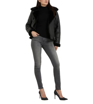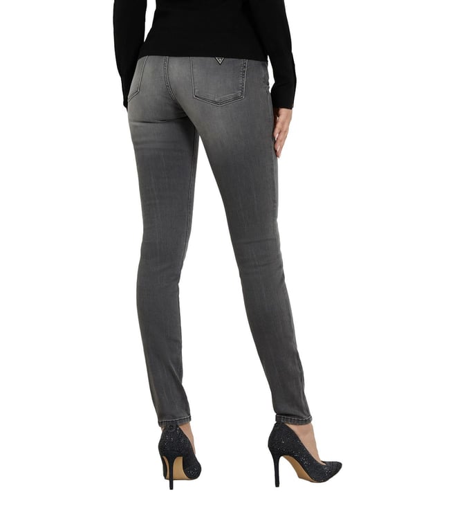 Guess Women's Grey Cotton Blend Solid Skinny Fit Jeans