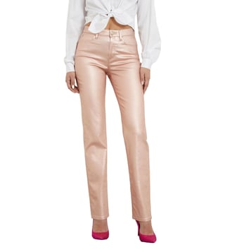 Guess Women's Peach Polycotton Solid Regular Fit Pants