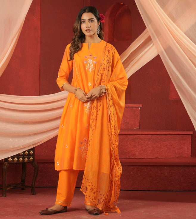 Orange Chanderi Regular Fit Suit Set