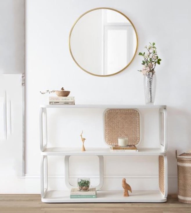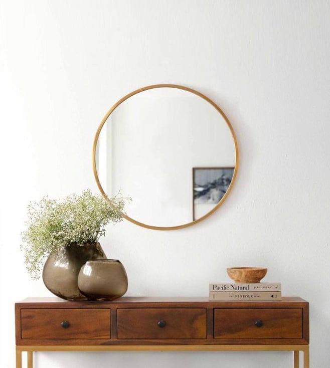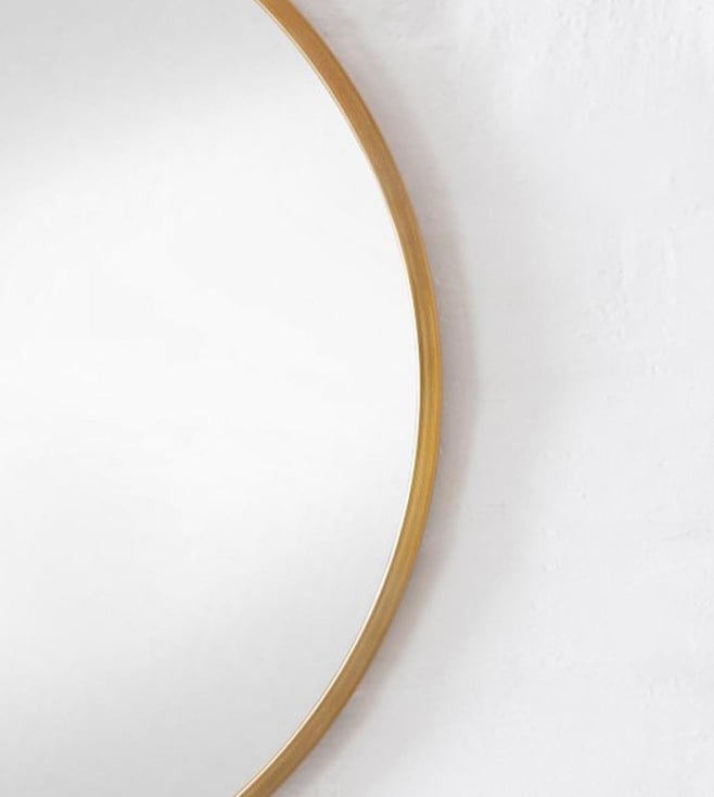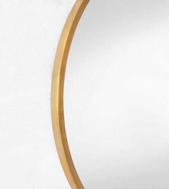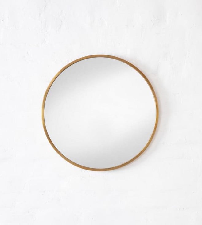 Similar to mid-century decor with a taste for minimalist orientation, this glass mirror offers a fresh appeal. It adorns a bent-rimmed edge that adds a Gatsby-glam to spaces while magnifying its affinity with opulence. It can be used as a tabletop mirror and can be hung on your wall. The frame is crafted of metal, casting with an antique brass finish. Disclaimer: All other items in the image are only for display purposes and will not be a part of the delivery content. Country of Origin - India.