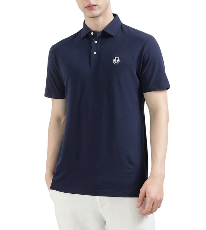 HACKETT LONDON Blue Solid Regular Fit Polo T-Shirt