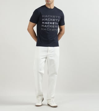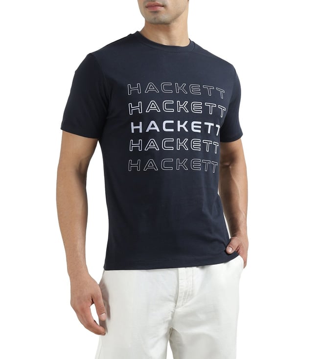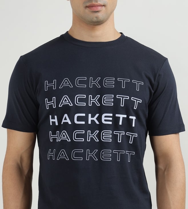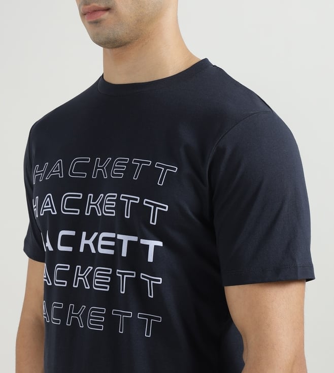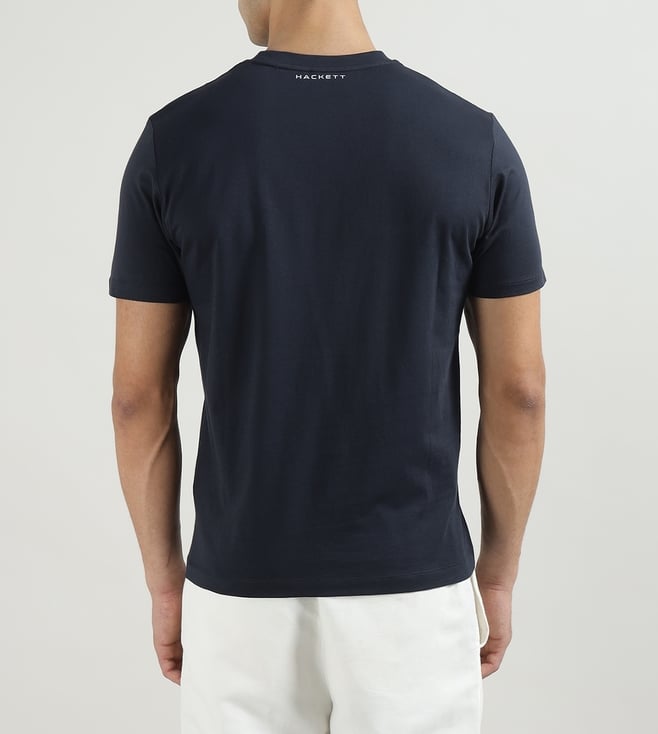 Hackett London Navy Cotton Regular Fit Printed T-Shirt