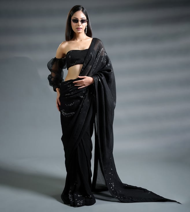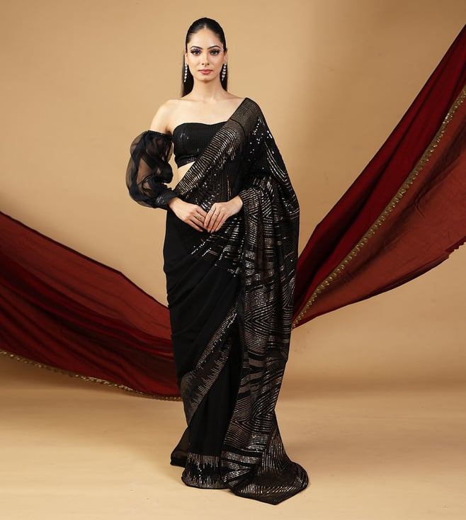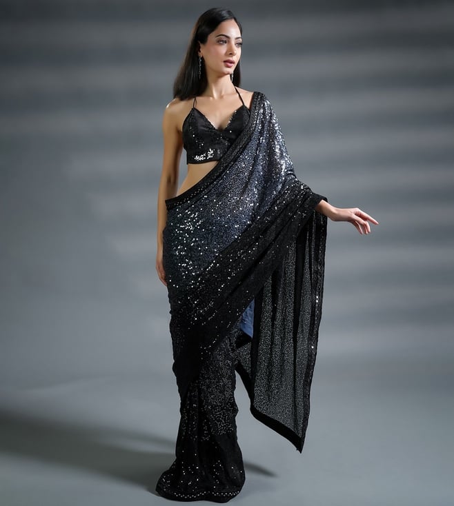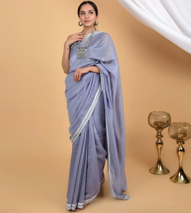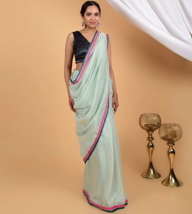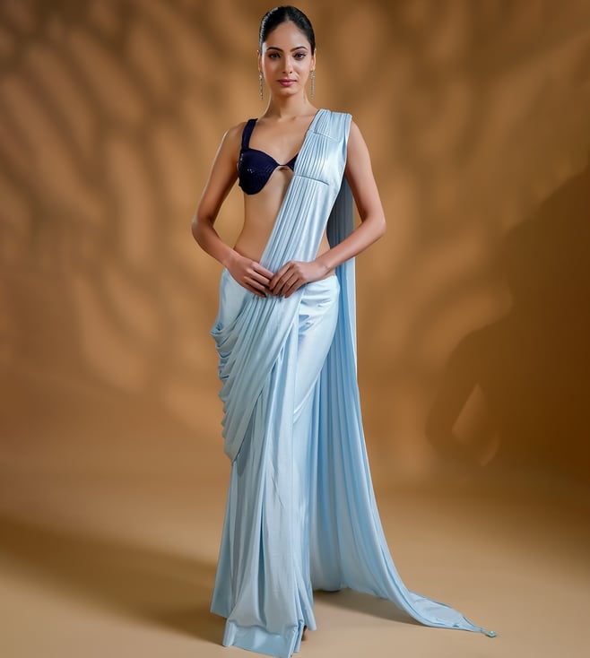 Aqua Silk Embellished Ready To Wear Saree With Unstitched Blouse