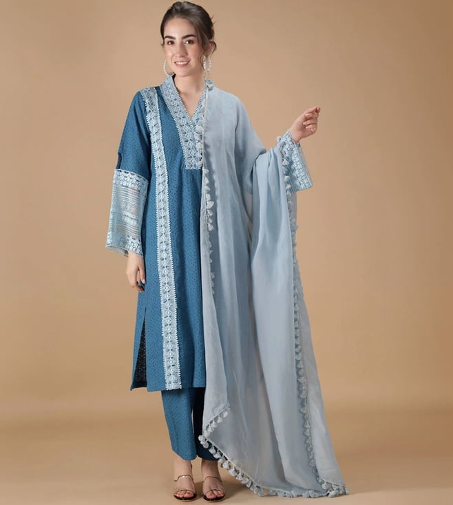 Tranquil Teal Symphony Chanderi Kurta with Silk Lace