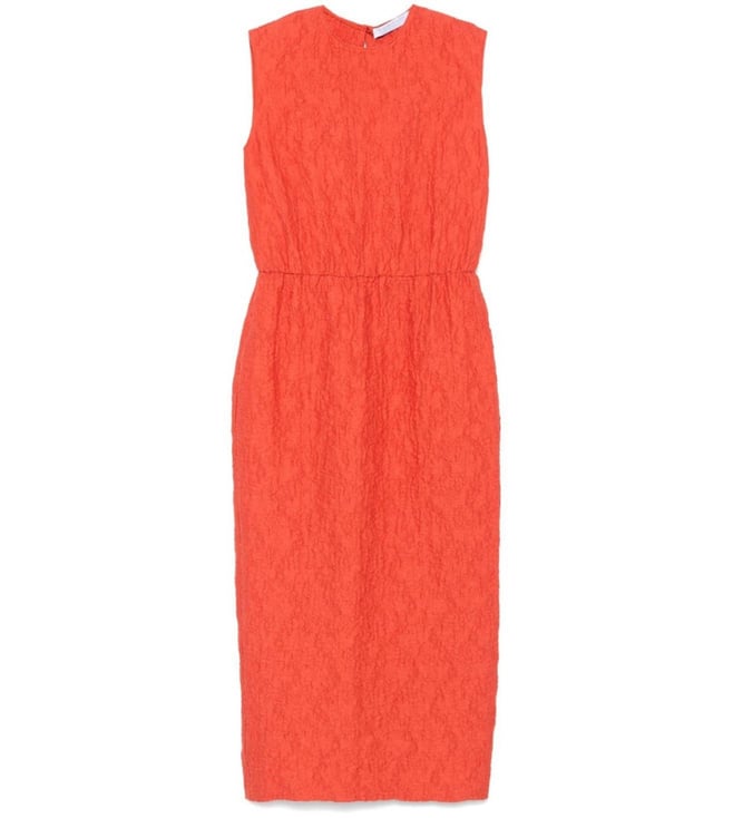 Orange Crinkled Midi Woven Design Dress