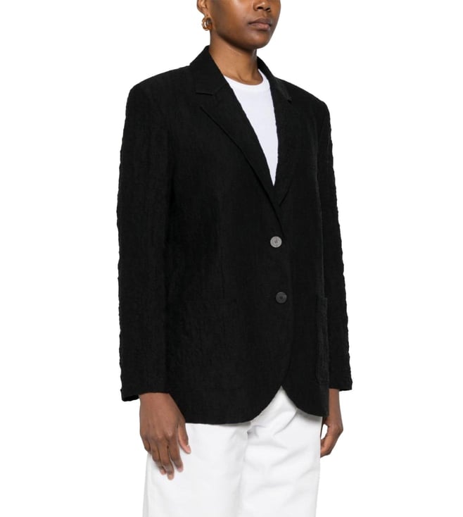 Black Crinkled-Finish Woven Design Blazer