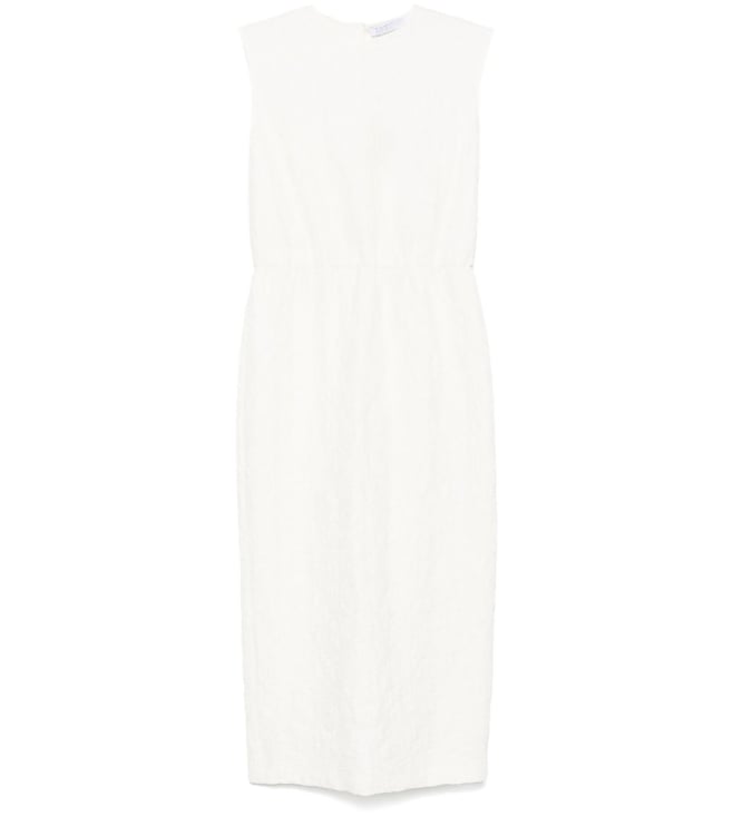 White Crinkled Shoulder-Pads Woven Design Blazer