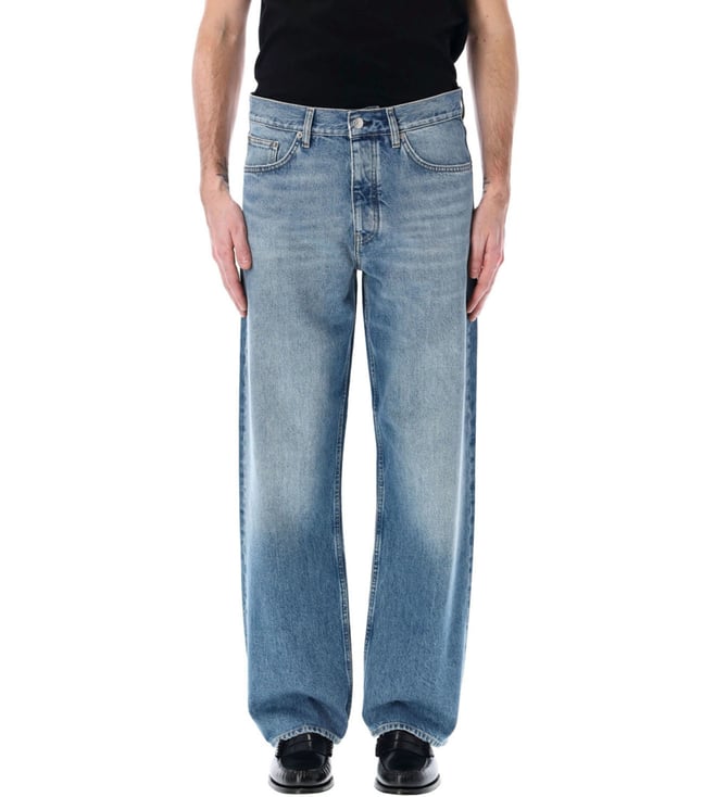 Hello Sunflower Blue Wide Twist Straight Lightly Washed Straight Fit Jeans