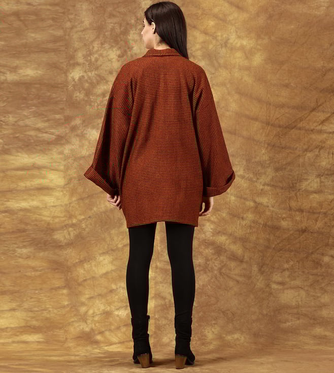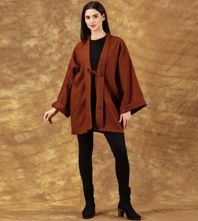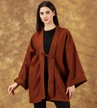 Inculcate a combination of style and panache to your wardrobe with this cape jacket. It is crafted with care using 100 percent wool. Disclaimer: All other items in the image are only for display purposes and will not be a part of the delivery content. Product colour may slightly vary due to photographic lighting sources. Country of Origin - India.