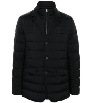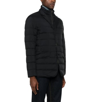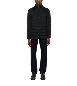 Elevate your style with the Herno Black Regular Fit Jacket. Black goose down design insulated design layered details detachable panels notched collar long sleeves chest welt pocket two front flap pockets straight hem internal slip pocket full lining front button and zip fastening la giacca nylon down jacket. This piece fits true to size. recommend you get your regular size model is 1,84m / 6ft 1in wearing size 48 (it).
