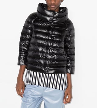 The Herno Black Jacket is a masterpiece of modern elegance and functionality. Crafted with precision, it features a sleek, minimalist design that exudes sophistication. The jacket's lightweight, water-resistant fabric ensures comfort and protection against the elements, while its tailored fit flatters any silhouette. Subtle details like the high collar and discreet pockets add a touch of refinement. Perfect for urban adventures or evening outings, this jacket seamlessly blends style and practicality.