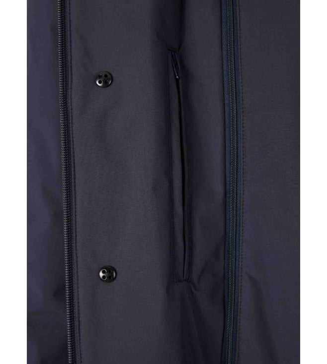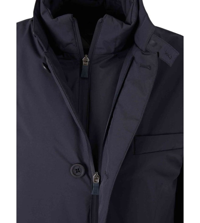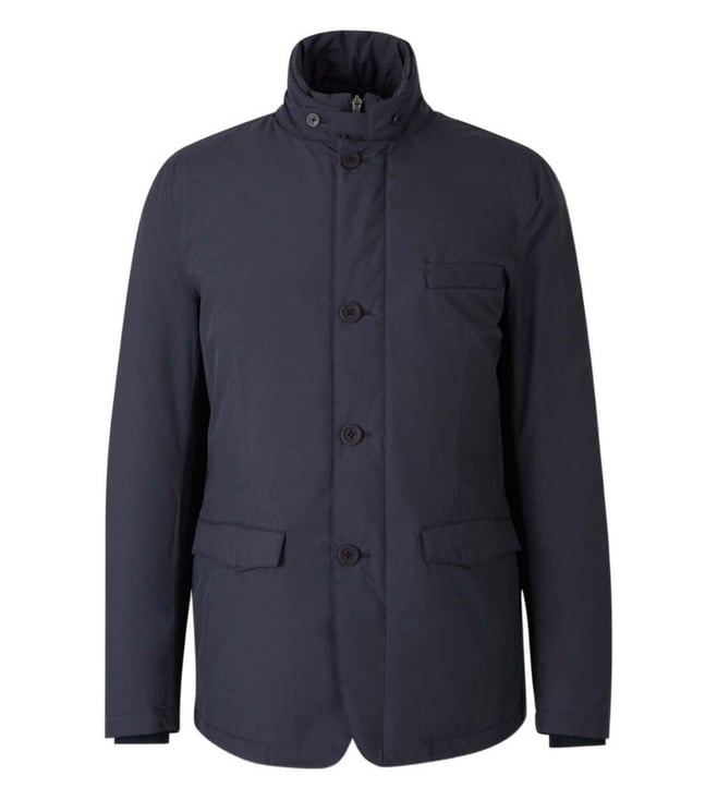 Dark-blue, zip fastening, button closure, high collar, welt pocket, double-breasted. Products purchased from Darveys are supported exclusively by the warranty/exchange policies of Darveys and its partner boutiques. Brand owners and their channel partners are not responsible for exchange/warranty services for items purchased through Darveys.