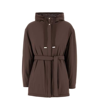 Brown Hooded Belted Jacket
