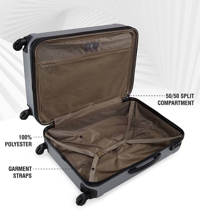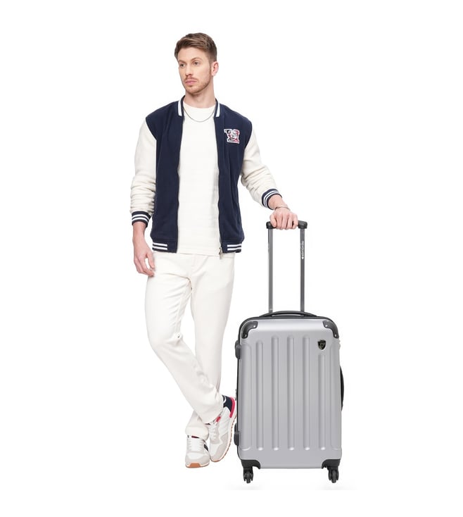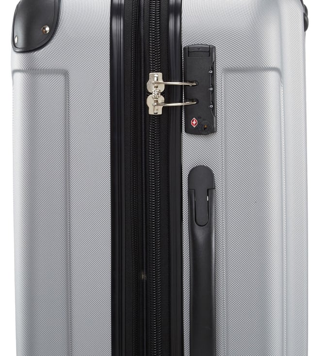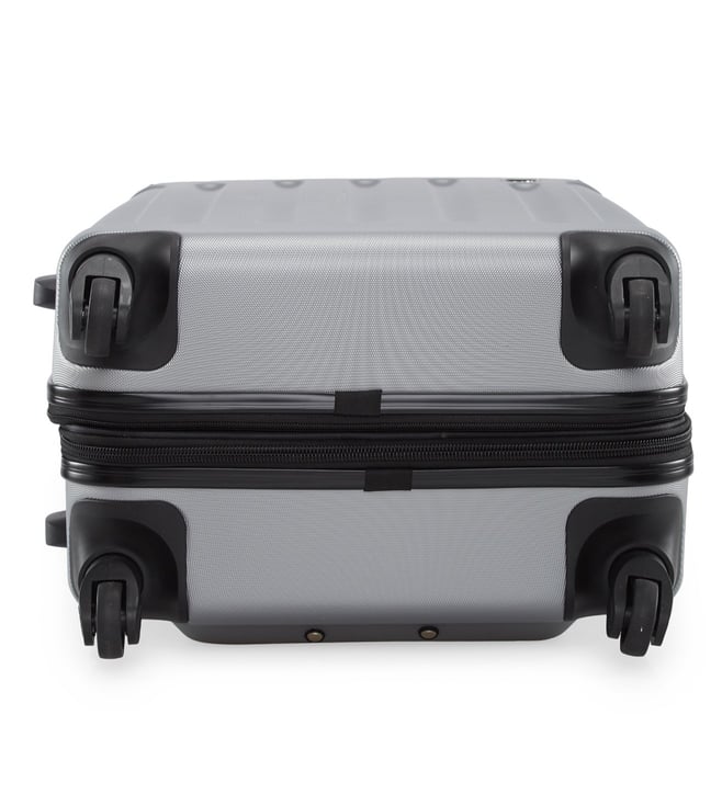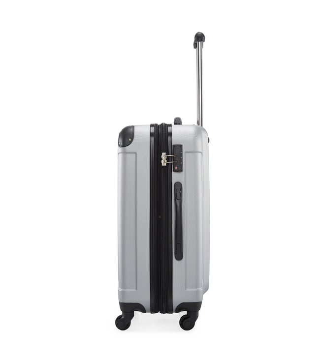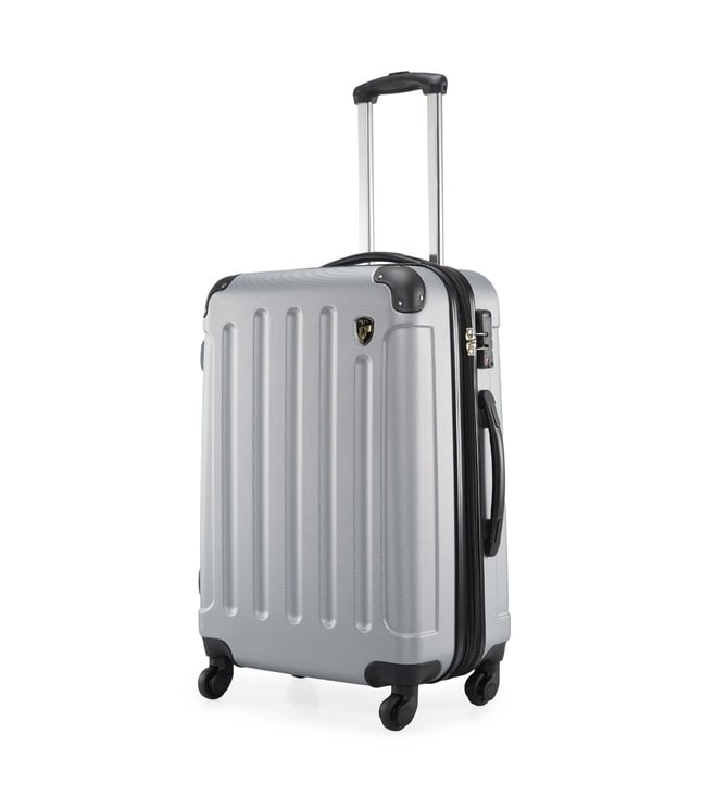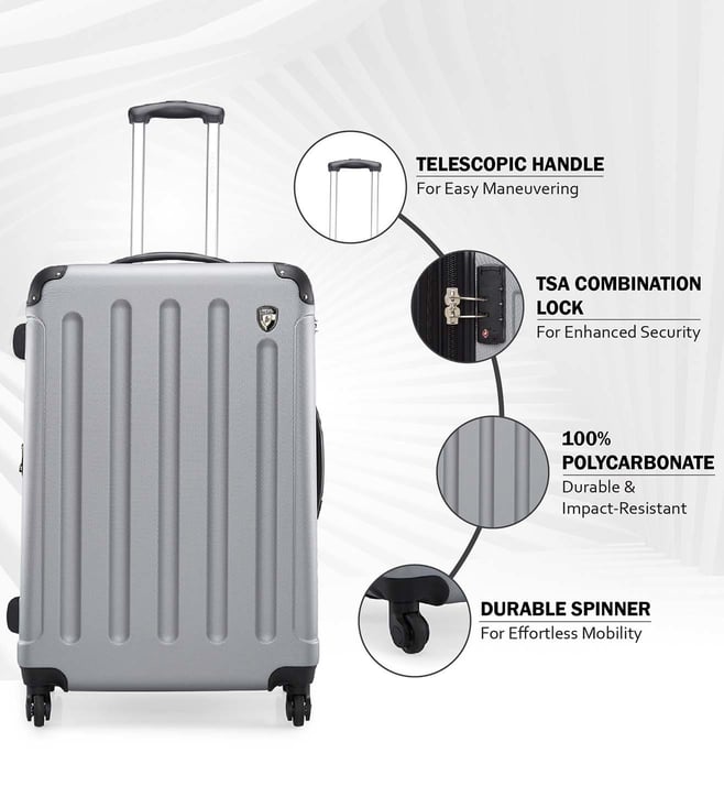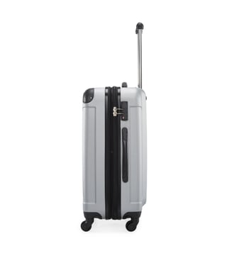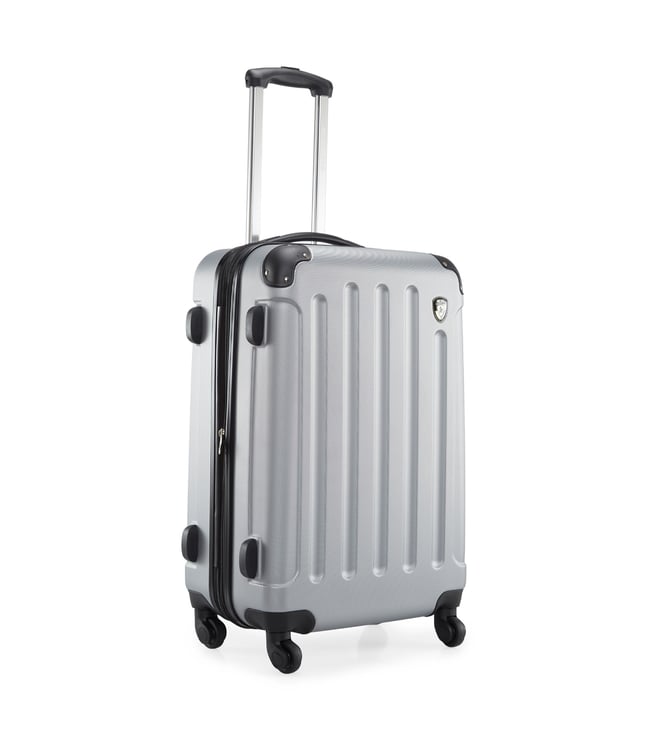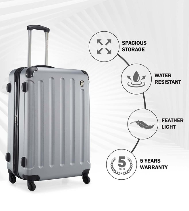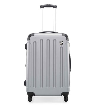 The heys revolver 26 inches hard silver luggage must be the next addition to your luggage collection. An eye-grabbing innovative classy design sets the tone for every trip you take. Constructed of abs the revolver range provides strength, lightweight and durability to give your belongings the best in protection with style. Sitting pretty on spinners, this hardside puts no weight on your arm and opens up to a fully-lined interior with a zippered compression panel and cross straps to keep your belongings in order.