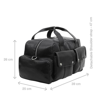 This duffle bag is your new go-to for all travel needs. It is handcrafted with leather and has a detachable and adjustable webbing shoulder strap. It comes with a spacious design and multiple pockets. Disclaimer: Product colour may slightly vary due to photographic lighting sources. Country of Origin - India.